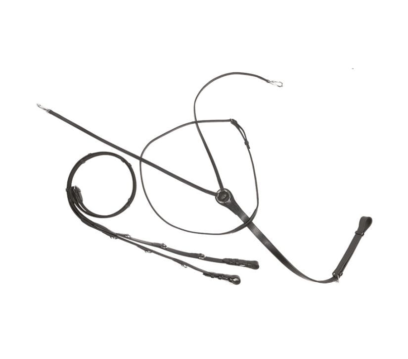 - klasyczne połączenie wodza-wytok - wodze z każdej strony z 3 półkolami - wykonane z płaskiej skóry rozmiar: pony, full kolor: czarny, brązowy okucia: srebrny