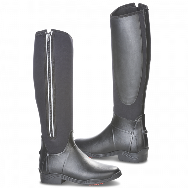 Bezszwowa, wodoodporna część stopy o wyglądzie buta do jazdy konnej i dopasowaniu ze stoperem wykonanym z wytrzymałej gumy z dużą zawartością kauczuku naturalnego, odpornego na oleje i amoniak