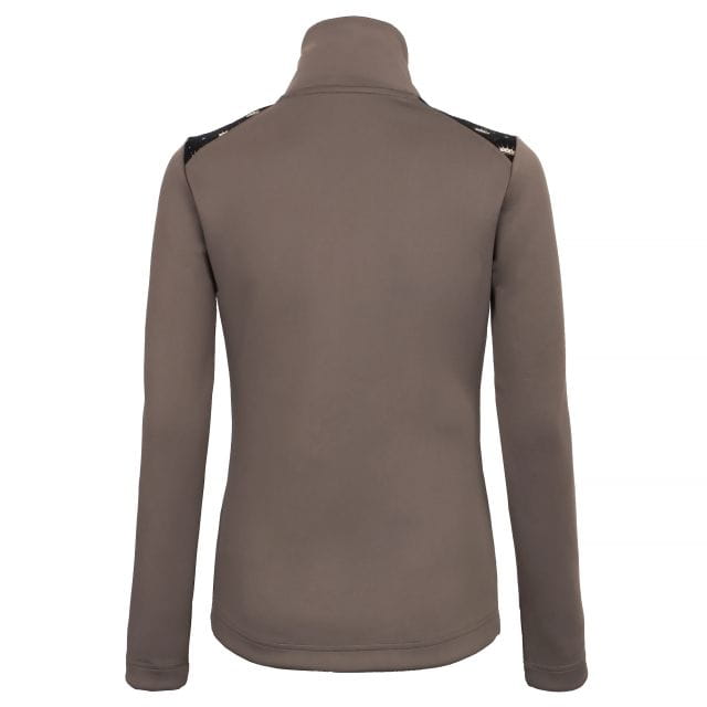 Elegancka, dopasowana bluza wykonana z technicznych materiałów. Jest lekki, oddychający i szybkoschnący, ale nie chłonie wody z zewnątrz. Zdobiona nadrukami, materiałem z wysublimowanymi koronami i metalowymi wstawkami na pagonach. Posiada dwustronny zamek błyskawiczny. Świetny wybór również do codziennych stylizacji.