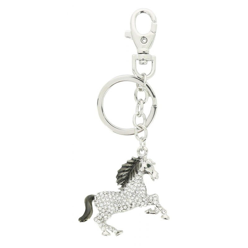 Brelok w kształcie galopującego konia, ozdobiony szklanymi kryształkami.