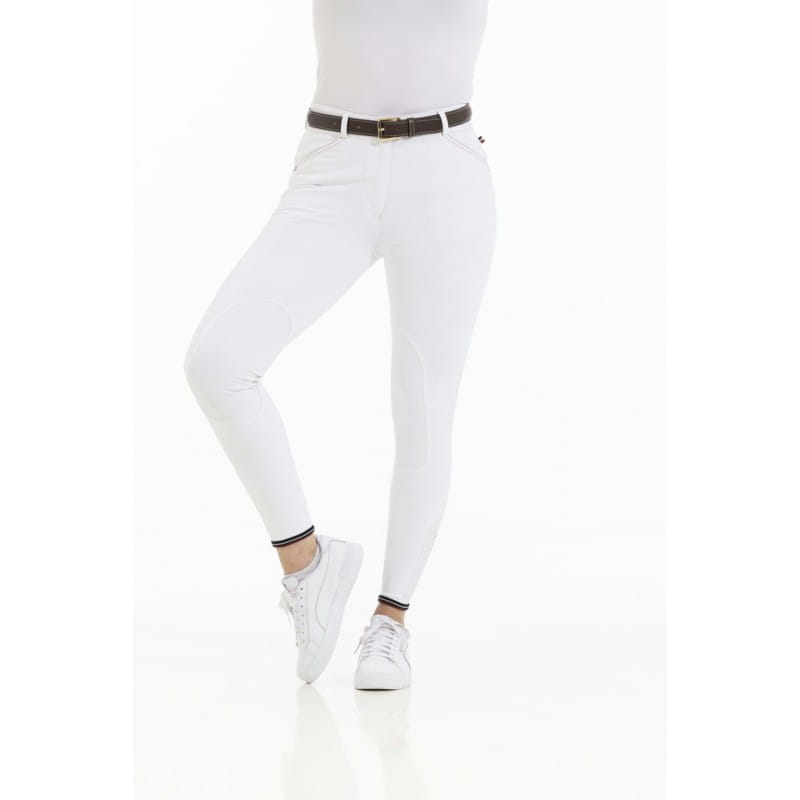 Odkryj lekkie i płynne białe bryczesy jeździeckie, które gwarantują wyjątkowy komfort noszenia dzięki zastosowaniu materiału (89% poliamid, 11% elastan). Te bryczesy są oddychające, wodoodporne i rozciągliwe, co czyni je idealnym wyborem na każdą pogodę i intensywne treningi. Wyposażone w silikonowe łaty na kolanach, zapewniają dodatkową przyczepność i stabilność podczas jazdy. Zapięcie na haczyk i zamek błyskawiczny dodaje funkcjonalności, a możliwość prania w pralce w temperaturze 30°C sprawia, że są łatwe w pielęgnacji.
