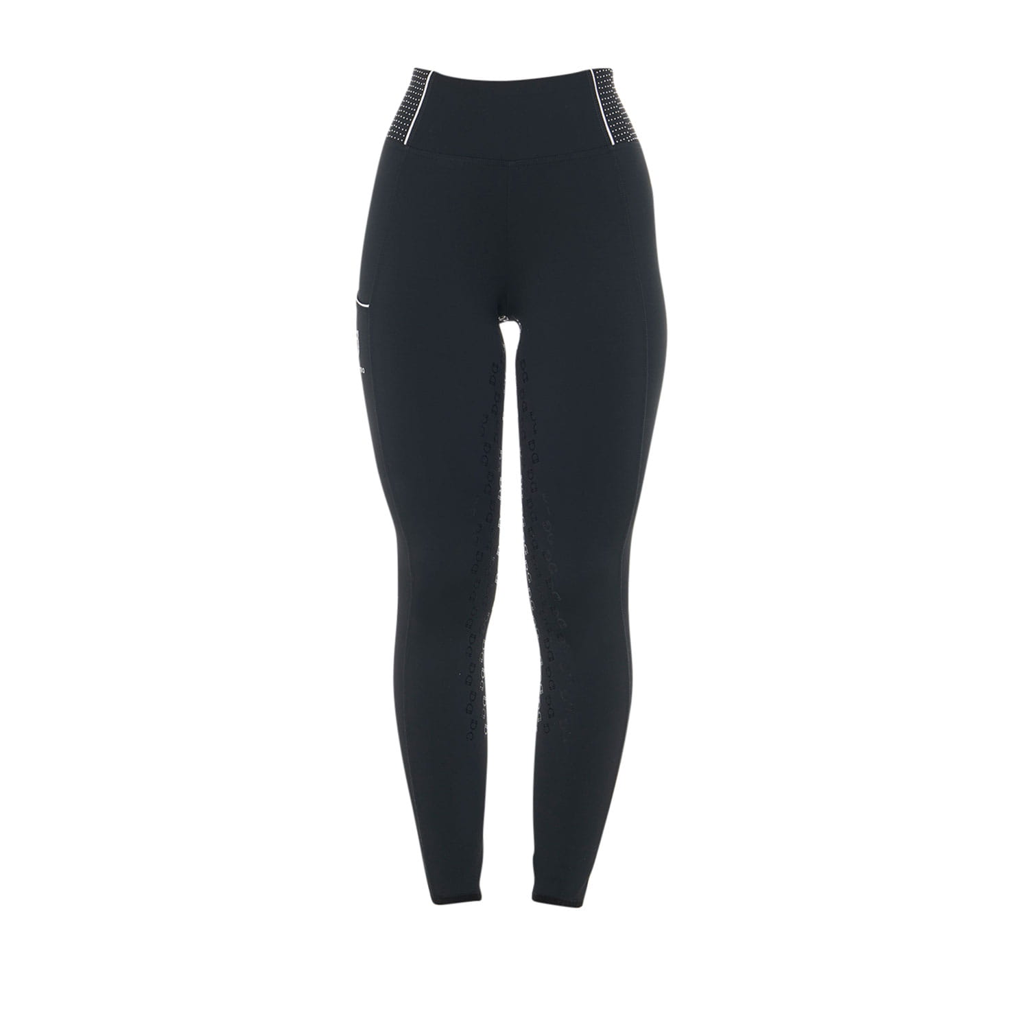 Legginsy gwarantują doskonałe dopasowanie do sylwetki, łącząc funkcjonalność z wygodą. Silikonowy lej z logo Equestro, umieszczony z tyłu i po wewnętrznej stronie kolan, poprawia stabilność w siodle i wspomaga utrzymanie prawidłowej pozycji jeździeckiej. Dodatkowa boczna kieszeń pozwala na wygodne przechowywanie drobiazgów, np. telefonu lub kluczy.