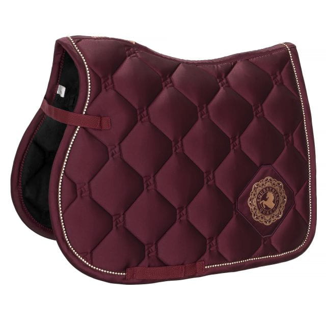 Elegancki czaprak wykonany z błyszczącego materiału, podszyty siateczką dla lepszego odprowadzania wilgoci. Idealnie wyprofilowany aby dopasować się do grzbietu Twojego konia. Zdobiony dużym printem w kształcie mandali, haftem na kłębie oraz rzędem kryształków w oprawie Rosegold.