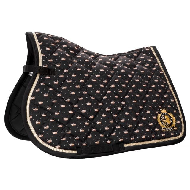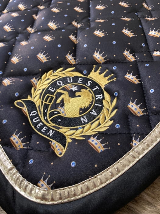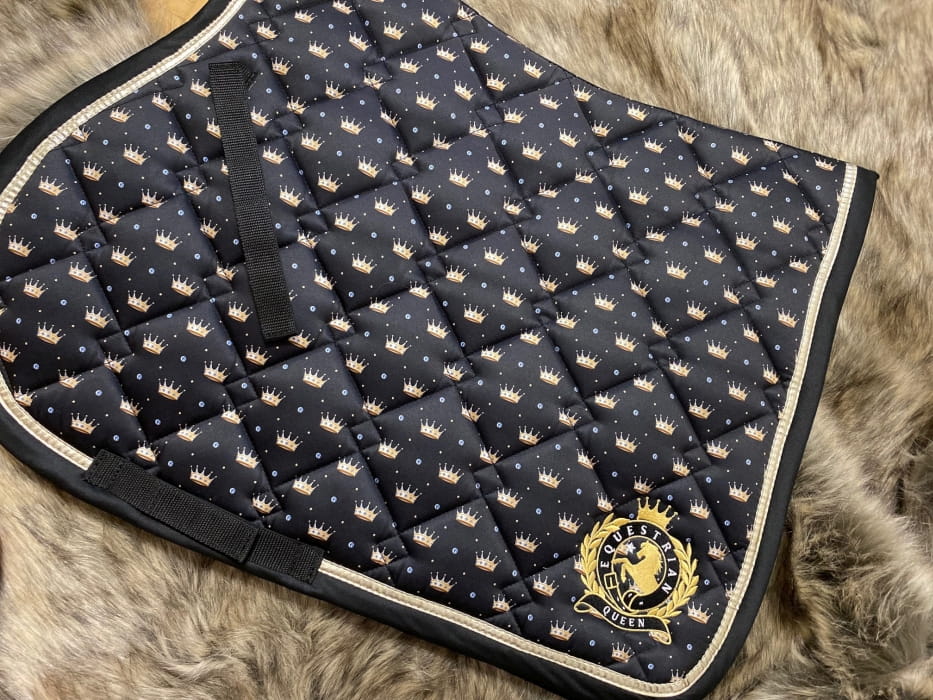 Czaprak z kolekcji Naples. Wzór w korony, po obu stronach logo EQ.QUEEN. Nadaje szyk twojemu koniowi.
