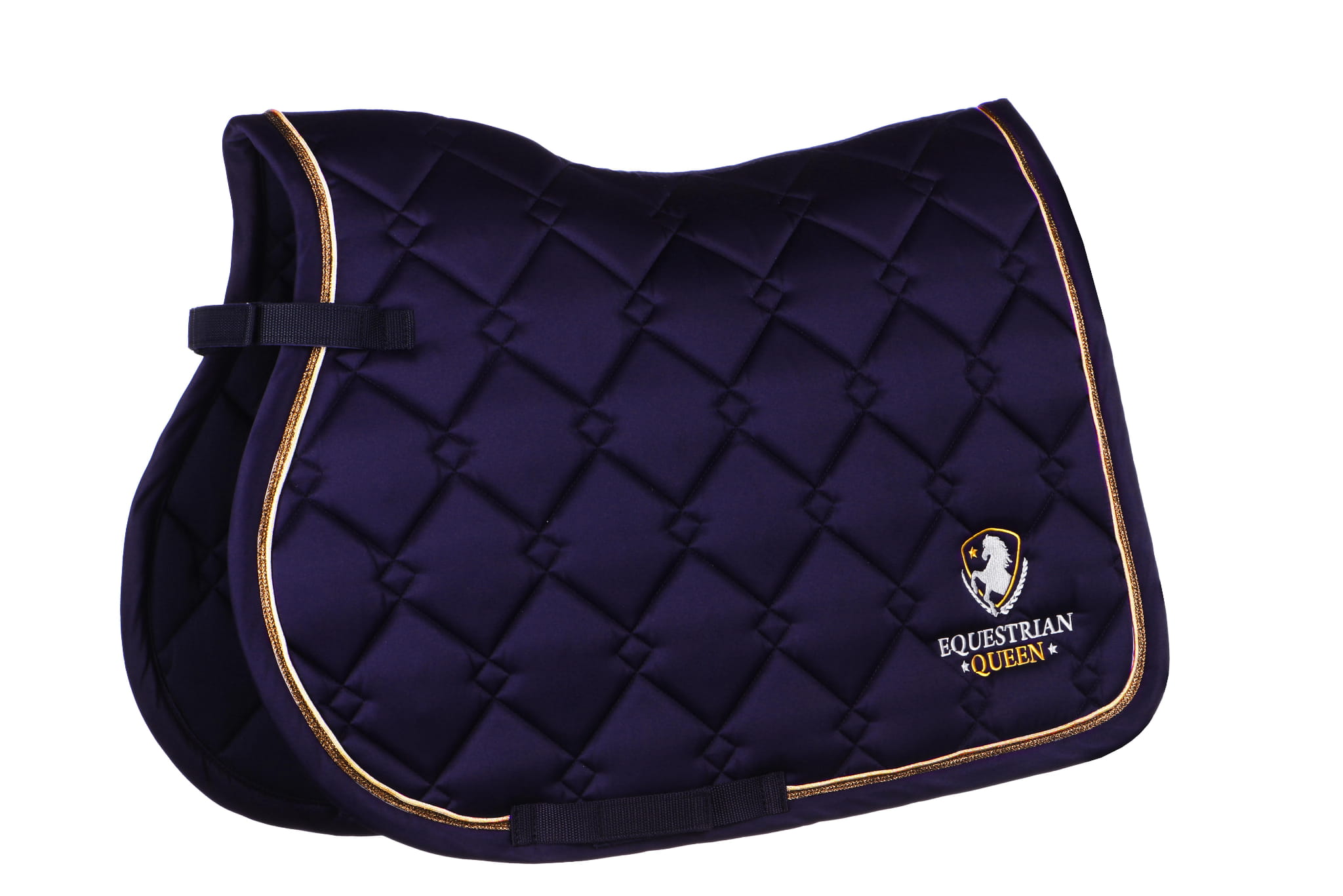 Czaprak wykonany z błyszczącego materiału łatwego w czyszczeniu. Podszyty siateczką. Świetnie odprowadza wilgoć i jest oddychający. Zdobiony klasycznym haftem i dwoma rzędami błyszczących taśm. Pasek do popręgu zapinany na rzep.