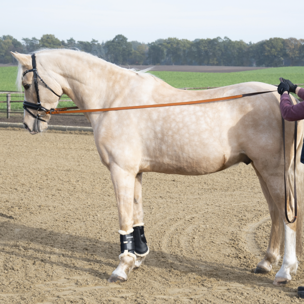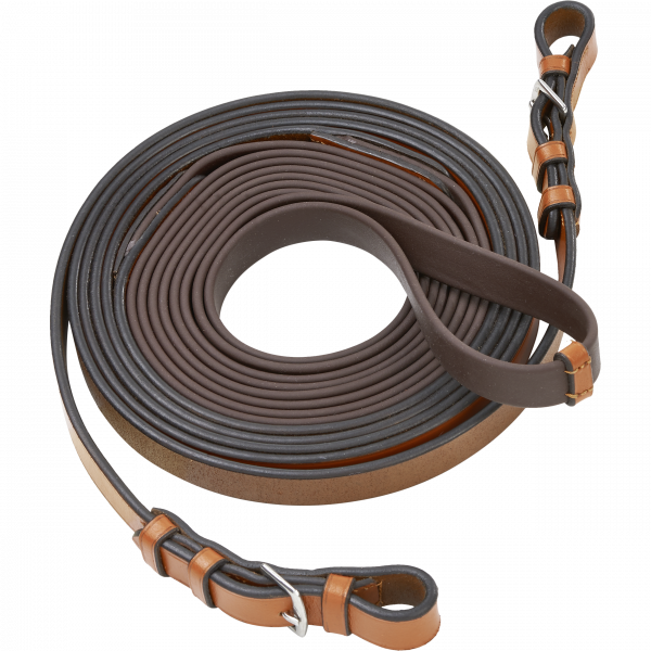 Łatwe do trzymania, długie wodze wykonane z taśmy pokrytej Biothane - do pracy z ziemi.