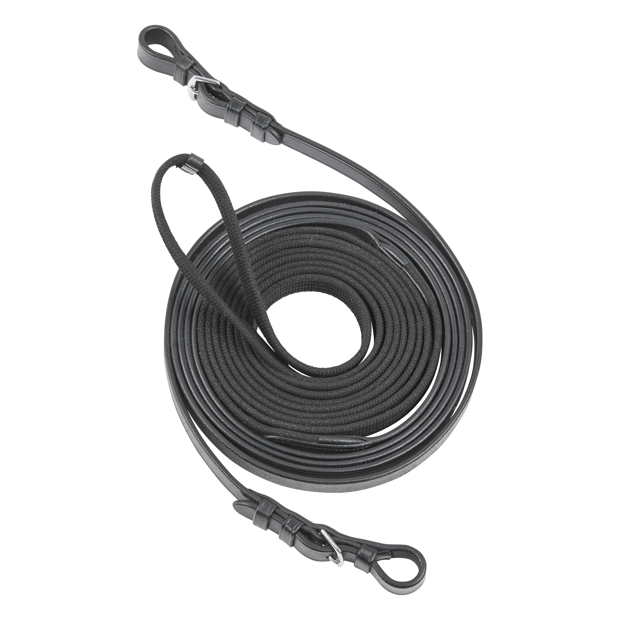 antypoślizgowe, długie wodze wykonane z taśmy, przeznaczone do pracy w terenie Dzięki materiałowi paska jest wyjątkowo lekki i przyjazny dla dłoni ze skórzanymi zakończeniami i sprzączkami, w razie potrzeby karabinki z wędzidłem można zapinać niezależnie zamykane bez centralnej klamry Szerokość: 19mm
