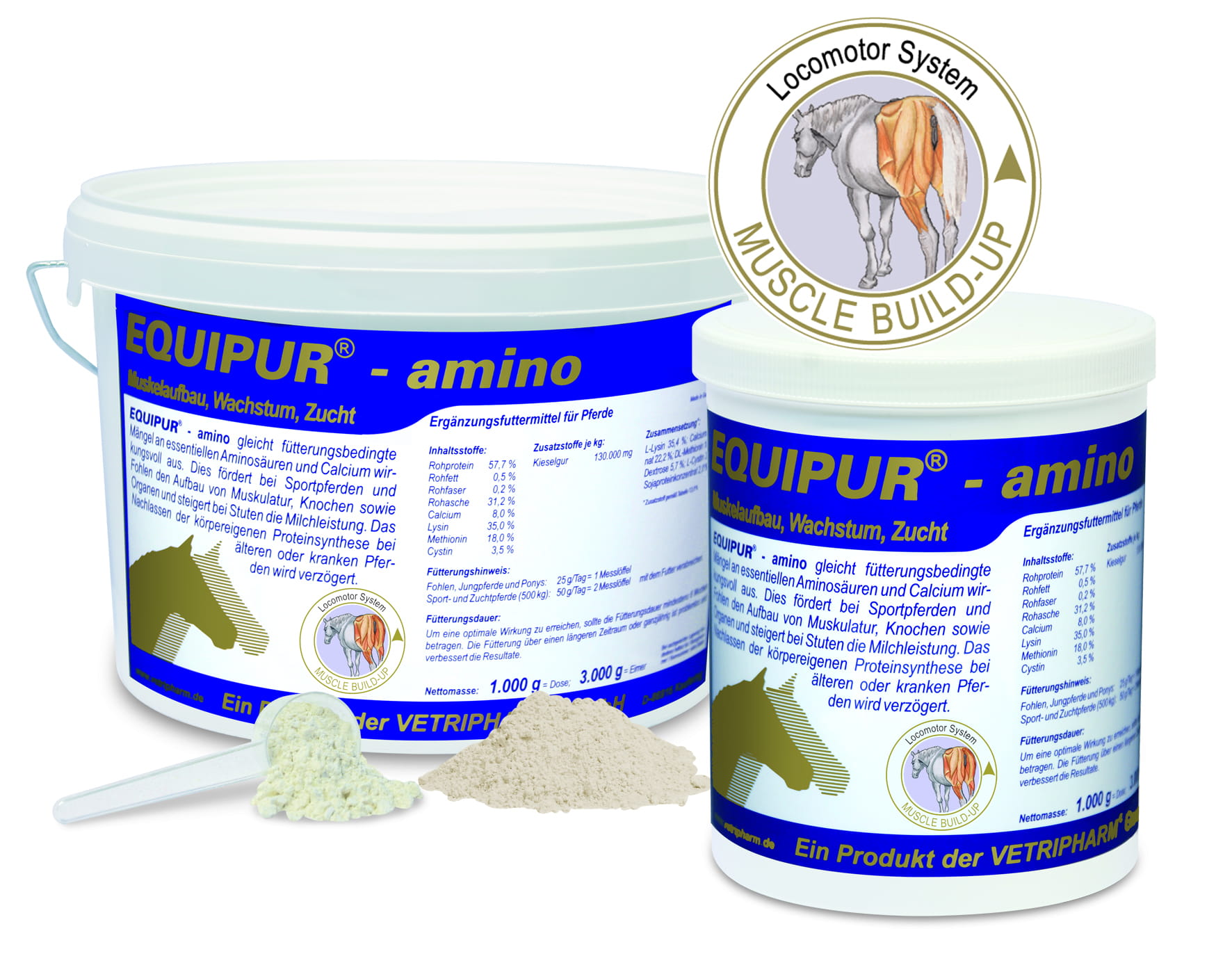 Podanie EQUIPUR - amino skutecznie równoważy niedobory aminokwasów : lizyną, metioniną i treoniną oraz minerałem wapnia. Wspomaga konie sportowe i rozwój źrebiąt, kości i tkankę łączną. Wydajność mleka u klaczy wzrasta, a u starszych lub chorych koni można zapobiec lub znacznie opóźnić zanik mięśni.
