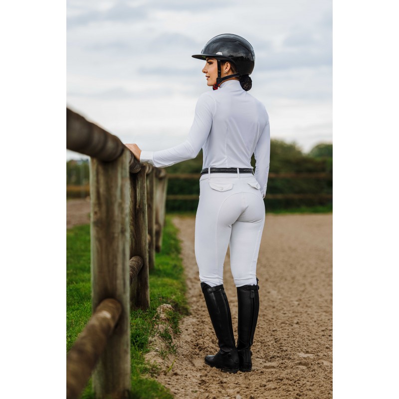 EquiTheme Bryczesy jeździeckie damskie Beverly z pełnym lejem sylikonowym - białe