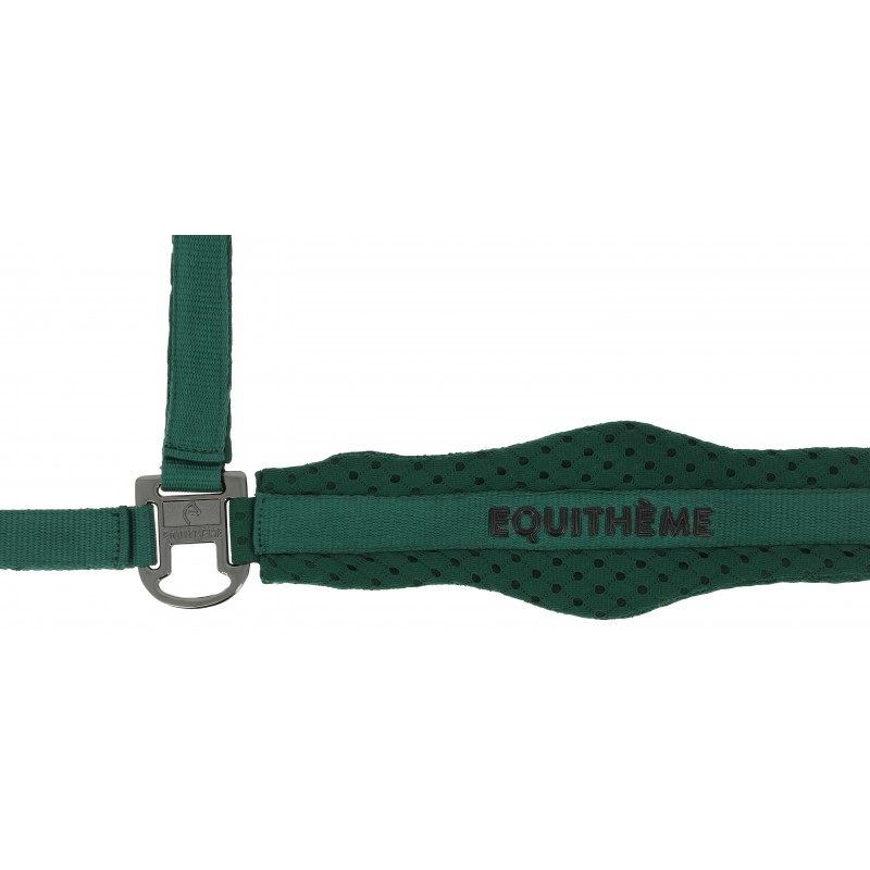 Stylowy design podkreśla nadruk EQUITHÈME 3D na nachrapniku oraz eleganckie, ciemne okucia z subtelnym logo marki. Kantar jest praktyczny i funkcjonalny – regulacja przy potylicy z obu stron pozwala na idealne dopasowanie do głowy konia, a solidny karabińczyk ułatwia codzienne zapinanie i odpinanie.