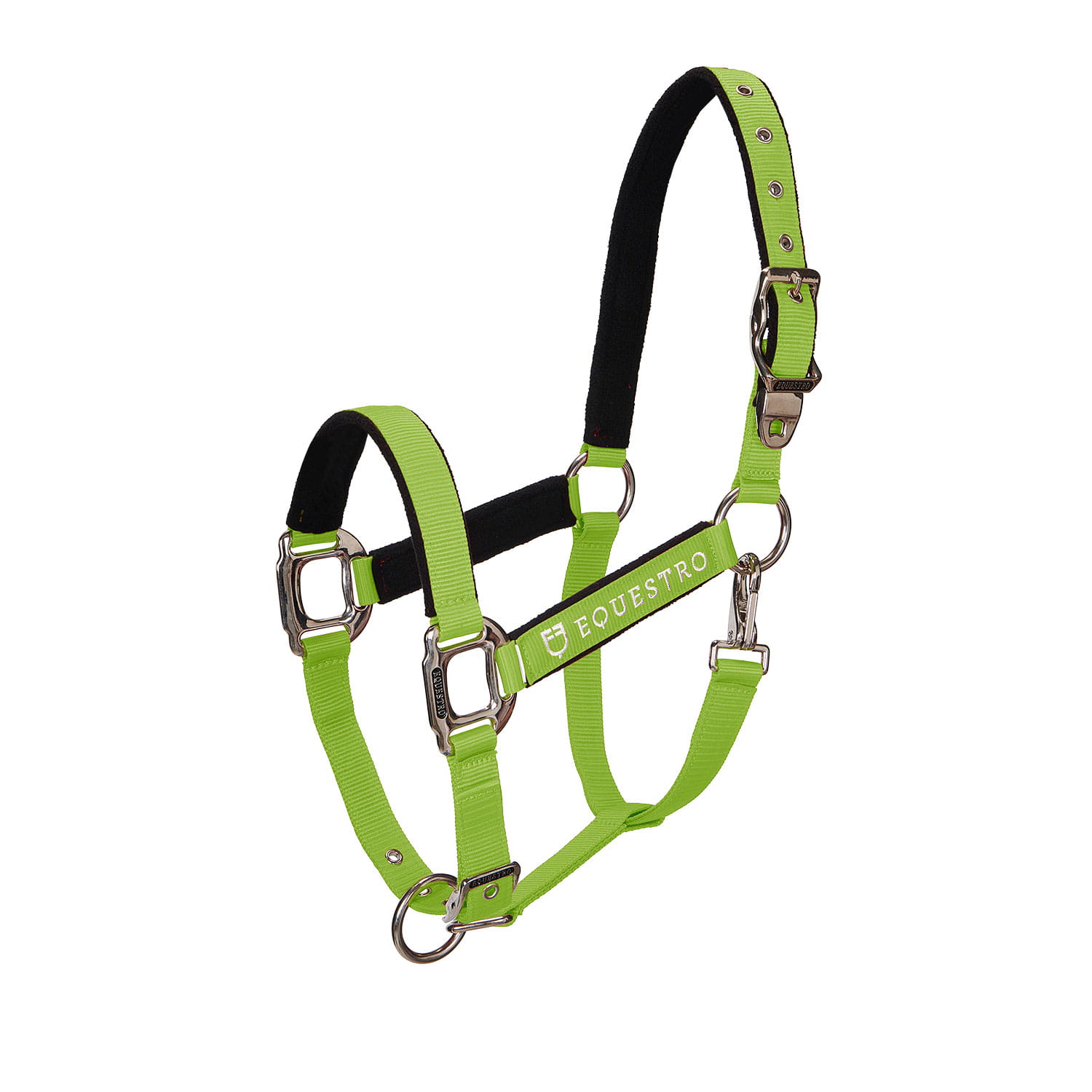 Wytrzymały nylonowy kantar z wyściółką z polaru, ultra odpornymi satynowymi sprzączkami i zapięciem na karabińczyk z regulacją po obu stronach.
