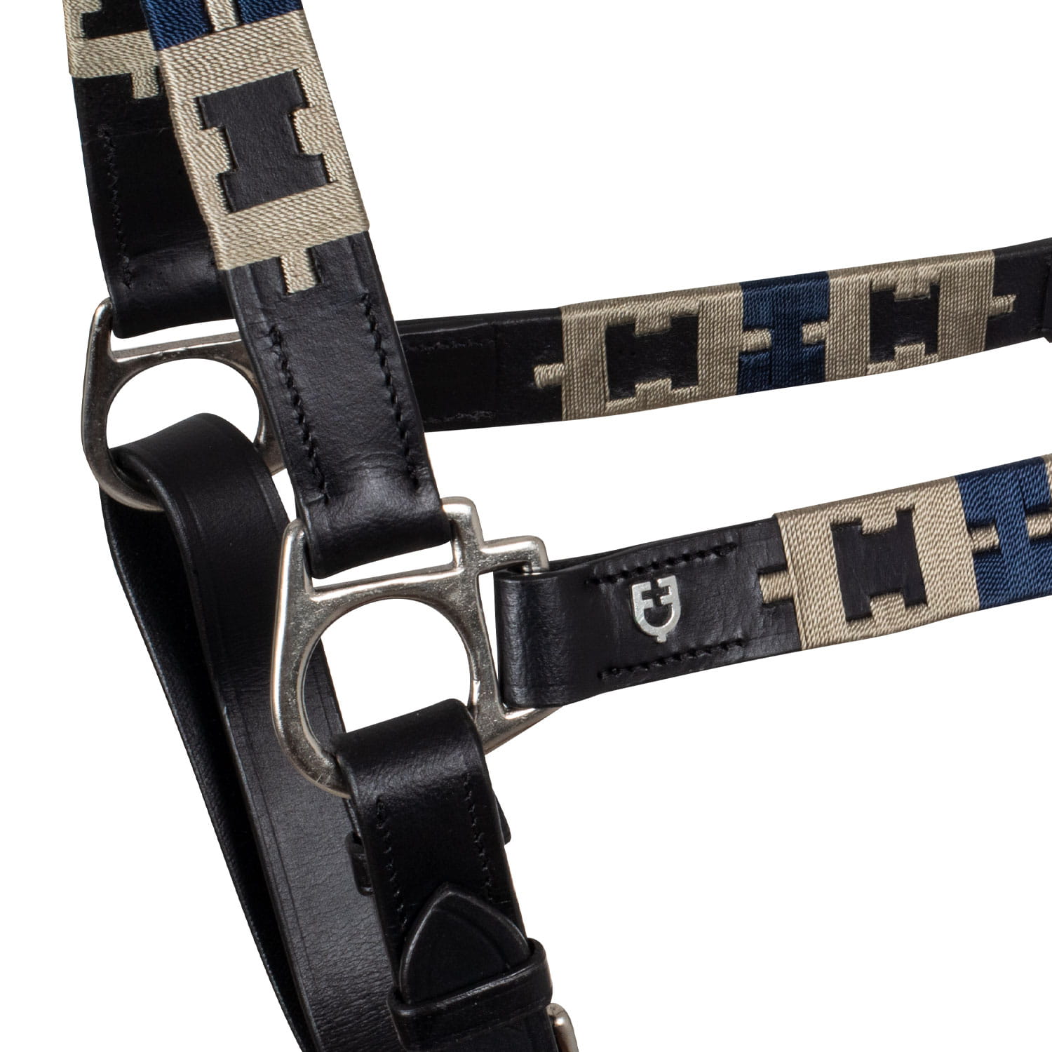 Wysokiej jakości kantar z miękkiej skóry ze sprzączkami ze stali nierdzewnej zapewniającymi niezwykłą wytrzymałość i zapięciem na karabińczyk. Wyposażone w podwójną regulację dla idealnego dopasowania i maksymalnego komfortu. Ozdobiona kontrastowym haftem w geometryczny wzór.