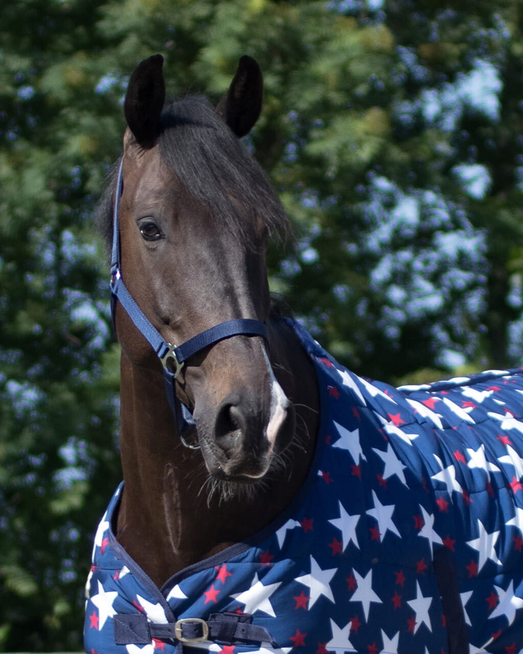 Podstawowy model kantara wykonany z wytrzymałej taśmy w modnym kolorze niebieskim. Kantar posiada solidne metalowe klamry oraz regulację na potylicy, co umożliwia łatwe dopasowanie do głowy konia. Dostępny w różnych rozmiarach, sprawdzi się świetnie podczas codziennej pracy i treningu.