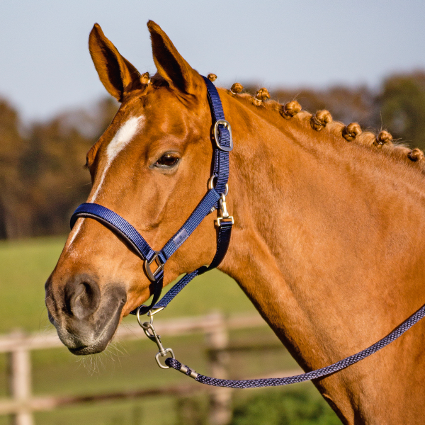 • pasek potyliczny i pasek nachrapnika podszyte syntetycznym kauczukiem wykończonym miłym w dotyku nylonowym dżersejem