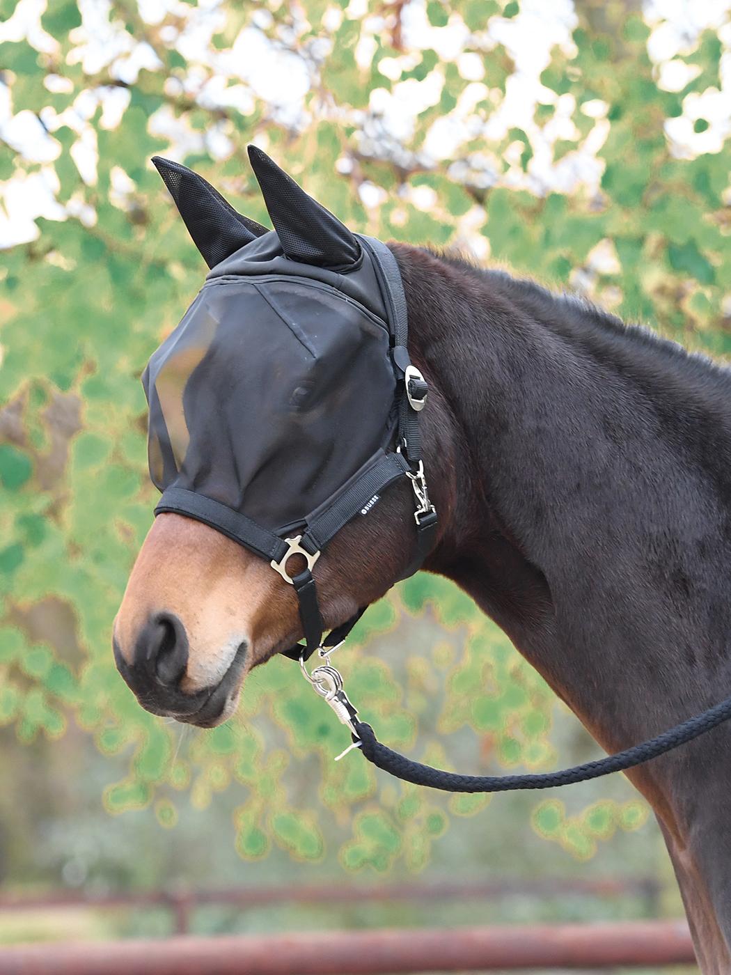 stabilny kantar ze zintegrowaną na stałe, dopasowaną osłoną oczu i uszu ułatwiającą obsługę