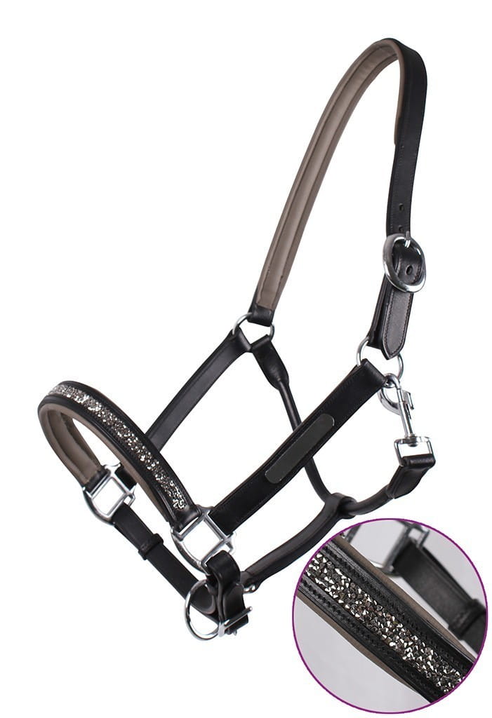 Bardzo elegancki kantar wykonany z wysokiej jakości skóry naturalnej w modnym, szarym kolorze. Miękkie podszycie w odcieniu beżowym zwiększa komfort użytkowania, a delikatne, błyszczące kamyczki na nachrapniku dodają mu wyjątkowego charakteru. Idealny na zawody, pokazy lub do codziennego użytku.