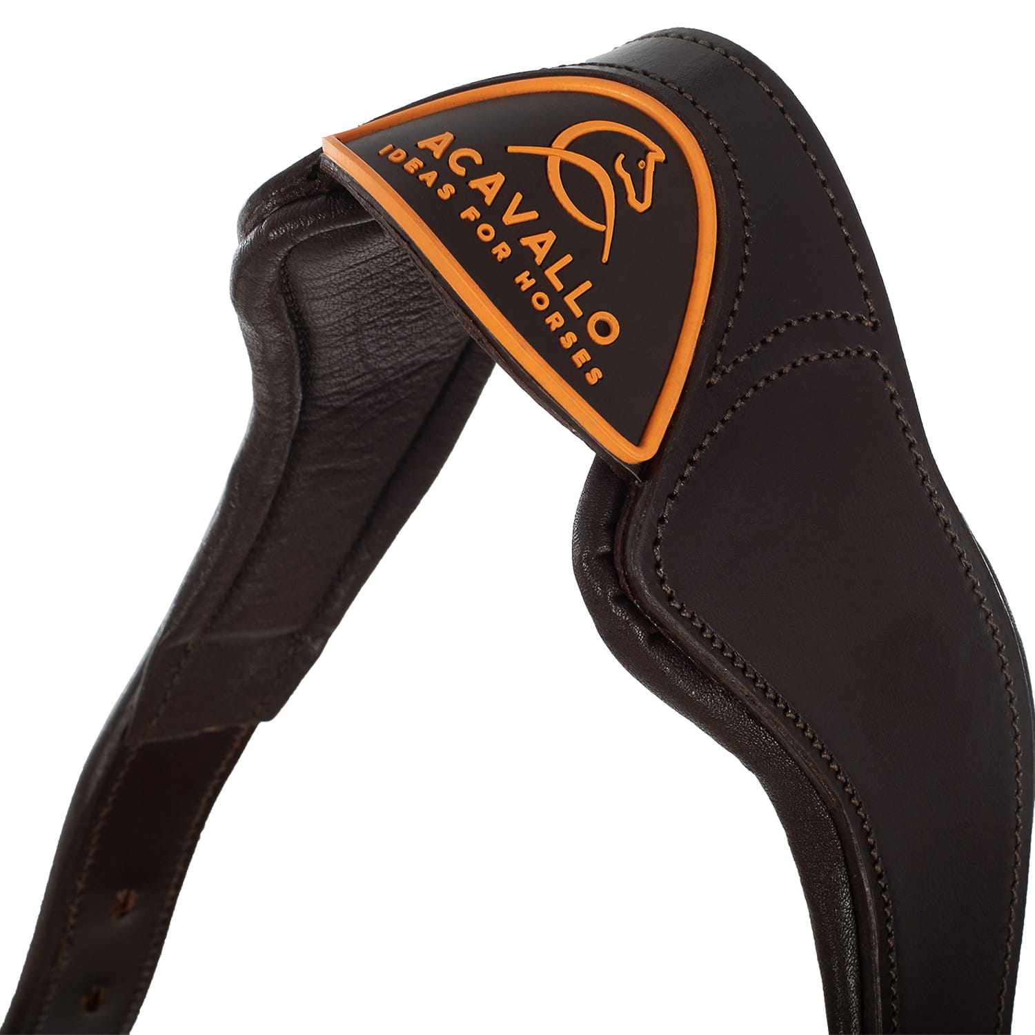 Kantar Acavallo ze skóry cielęcej z wyściełanym miękko paskiem potylicznym i nachrapnikiem. W pełni anatomiczny i ze specjalną wkładką odciążającą okolice czaszki. Gumowe logowane detale.