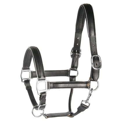 Wysokiej jakości skórzany kantar, z podwójną regulacją na pasku potylicznym.