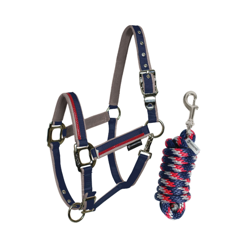 Wykonany z nylonu, z podwójną regulacją i polarową wyściółką dla maksymalnego komfortu i prawidłowego dopasowania. Sprzączki są satynowe, wytrzymałe i ozdobione reliefowym logo Equestro. Materiał: nylon i polar