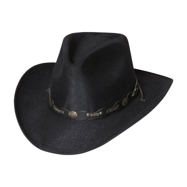 Meksykański kowbojski kapelusz ze sztucznego filcu z opaską ze skóry concho, miękką wewnętrzną opaską i regulowanym wiązaniem.