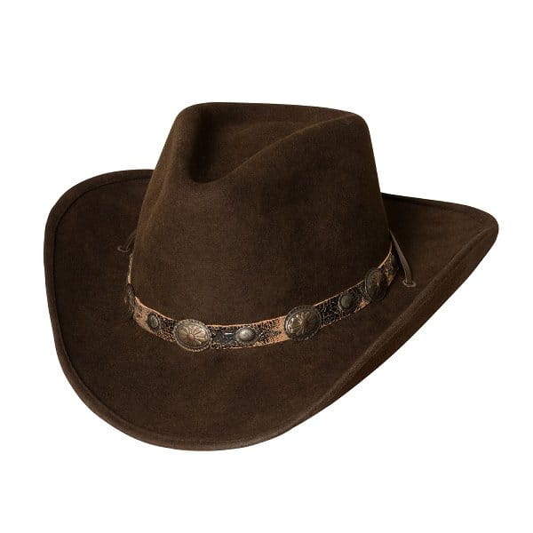 Kowbojski kapelusz z filcu wełnianego z regulowanym rondem i skórzaną opaską typu concho.