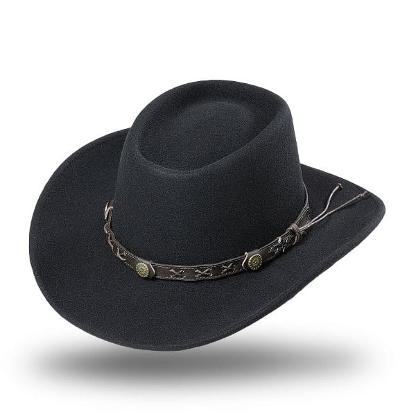 Kształtna czapka z filcu z wełny zachodniej z wysokiej jakości skórzanym paskiem, wyjątkowo wygodna w noszeniu dzięki miękkiej taśmie wewnętrznej.