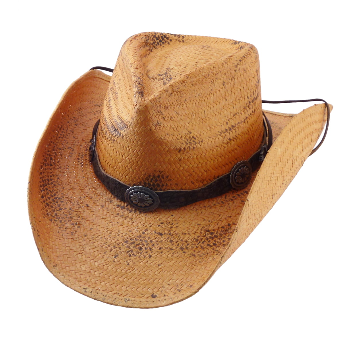 Słomkowy kapelusz westernowy, który można kształtować, z rondem do samodzielnego dopasowania, skórzanym paskiem i skórzanym krawatem.