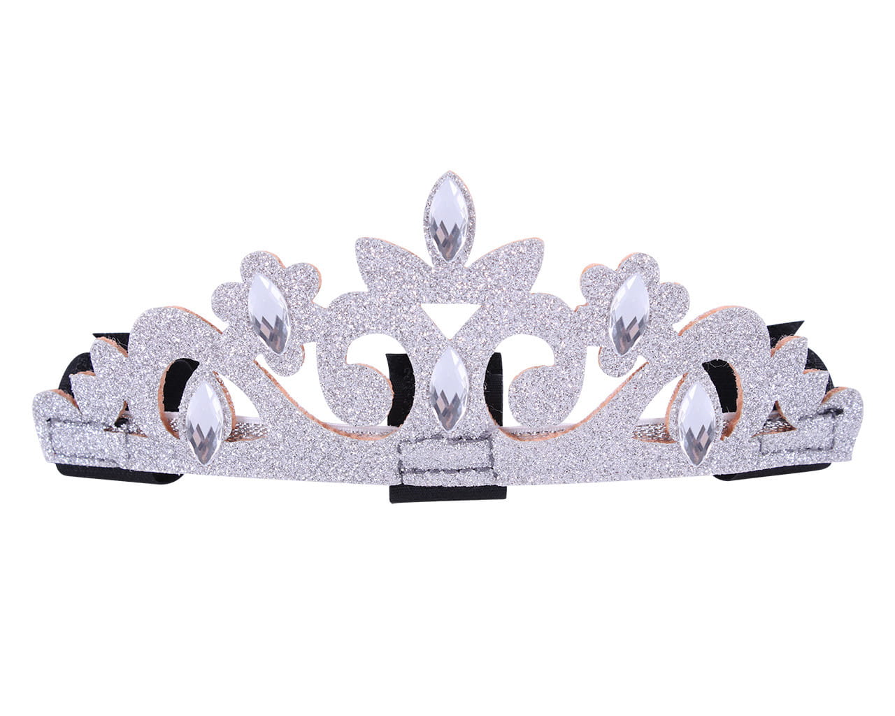 Stylowa korona dla konia QHP w kolorze srebrnym to zabawna i efektowna ozdoba, która nada Twojemu koniowi wyjątkowego, królewskiego wyglądu. Wykonana z filcu pokrytego srebrnym brokatem, ozdobiona błyszczącymi cyrkoniami. Dzięki trzem rzepom można ją łatwo przymocować do naczółka, a miękki filcowy tył chroni ogłowie przed uszkodzeniem. Idealna na sesje zdjęciowe, zawody tematyczne lub jako oryginalny gadżet stajenny.