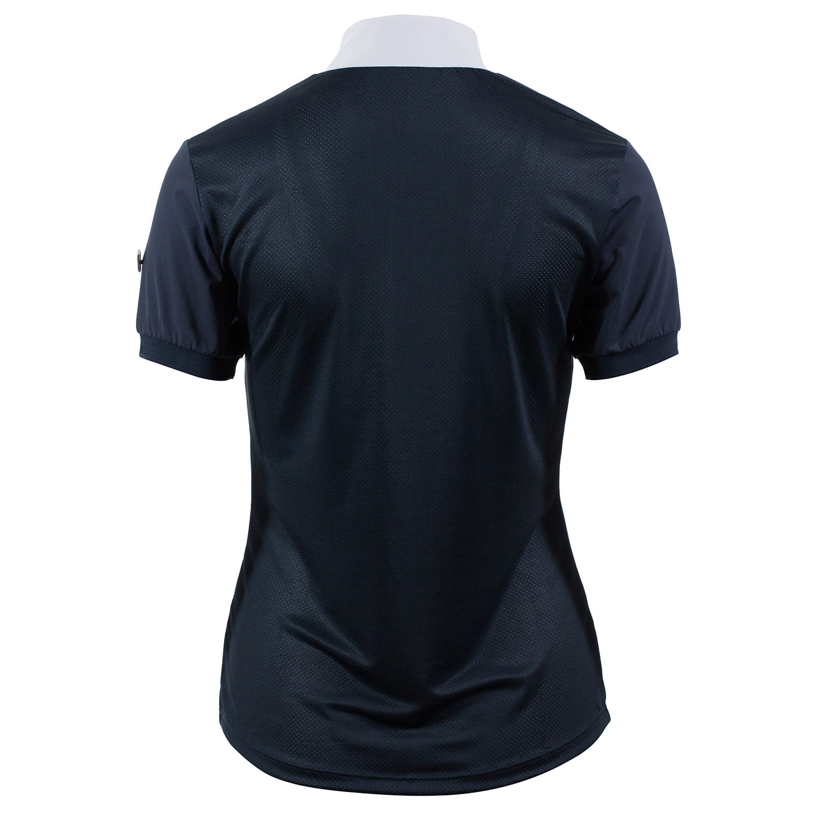Koszulka jest idealna na zawody, a dzięki wywijanemu kołnierzykowi może być noszona rozpięta podczas codziennego treningu. Tkanina siatkowa na wysokości klatki piersiowej i pleców umożliwia dodatkowy przepływ powietrza i zwiększa jej funkcjonalność. Zamek błyskawiczny jest łatwy w użyciu i umożliwia szybkie zapinanie i rozpinanie. Koszulka ma sportowy, acz kobiecy krój, idealnie nadaje się na różne okazje. Tkanina jest miękka, ale wytrzymała, co sprawia, że jest idealna dla aktywnych jeźdźców.
