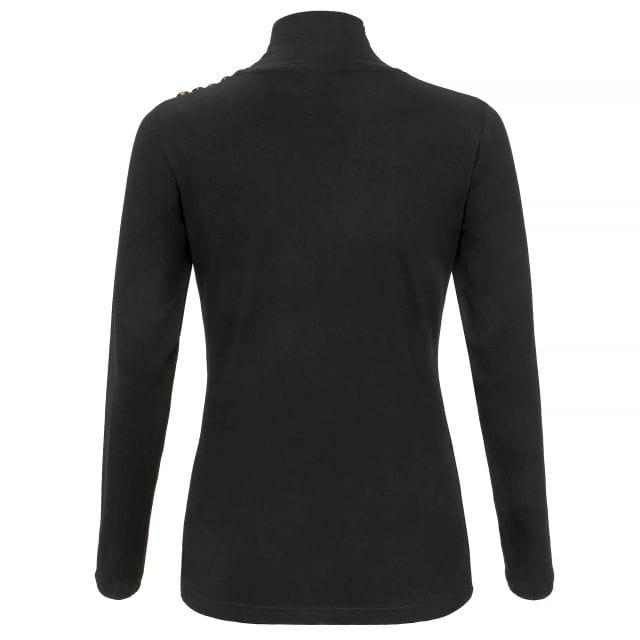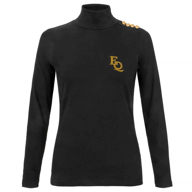 Golf z taliowanym długim rękawem idealny do codziennych stylizacji, nie tylko do stajni. Wyprodukowane w Polsce. Ozdobiona rzędem czterech heraldycznych guzików na lewym ramieniu i kryształkami EQ na piersi.