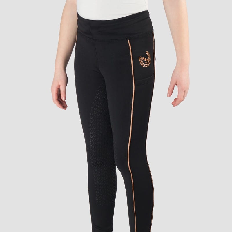 Legginsy jeździeckie HORKA Yuki w kolorze czarnym to idealne połączenie komfortu i elegancji. Wykonane z wysokiej jakości elastycznego materiału (85% poliester, 15% elastan, 350 g/m²), zapewniają wygodę i swobodę ruchów. Wyposażone w szeroki pas ze sznurkiem ściągającym dla perfekcyjnego dopasowania oraz lekkie matowe silikonowe siedzisko, które zwiększa przyczepność w siodle. Detale w kolorze różowego złota lub srebra dodają wyrafinowanego stylu. Dostępne w rozmiarach dziecięcych i damskich, są doskonałym wyborem na każdą jazdę konną.