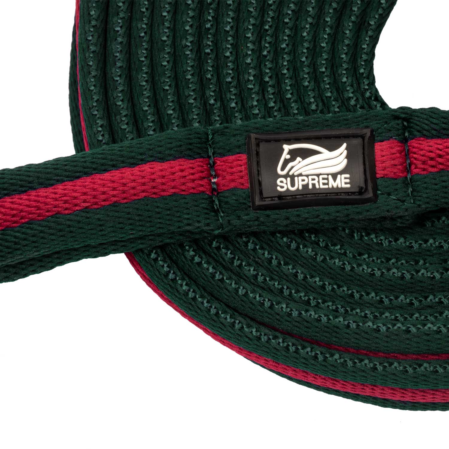 Profesjonalna lonża z mostkiem o długości 8 metrów, wykonana z miękkiego i trwałego materiału, zapewniająca komfort i bezpieczeństwo podczas pracy z koniem. W komplecie znajduje się praktyczny mostek do lonżowania, który ułatwia prowadzenie i kontrolę konia. Lonża wyposażona jest w solidną taśmę poliestrową oraz obrotowy, ocynkowany karabińczyk do łatwego mocowania do kantara lub ogłowia. Na drugim końcu znajduje się wygodna pętla na rękę, zapewniająca pewny chwyt podczas treningu.