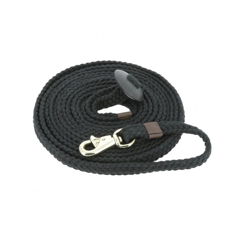 Poliestrowa lonża do ćwiczeń z dużym karabińczykiem i mosiężną płytką. Gumowy stoper. Długość: 8m.