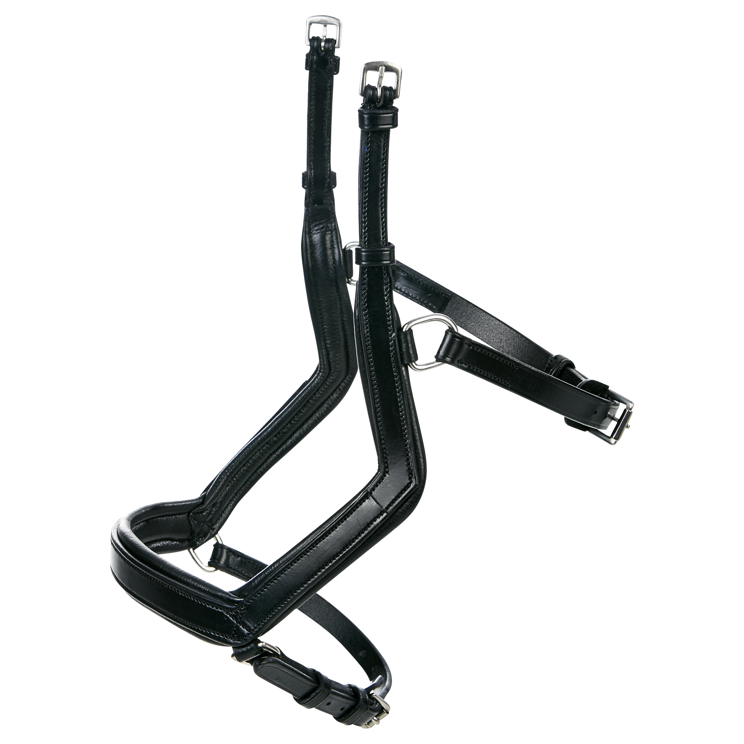 -dodatkowy rzemień na podgardle podgardle zapewnia w połączeniu z rzemieniem na podbródku odciążenie dolnej szczęki, delikatnie i bezpiecznie obejmójąc głowę konia