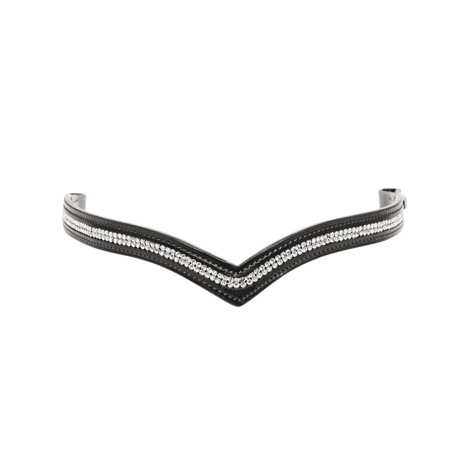 Naczółek Equestro Florence, z dwoma rzędami srebrnych cyrkonii. Wykonany z wysokiej jakości włoskiej skóry w szczególnym kształcie litery „V”. Materiał: Skóra