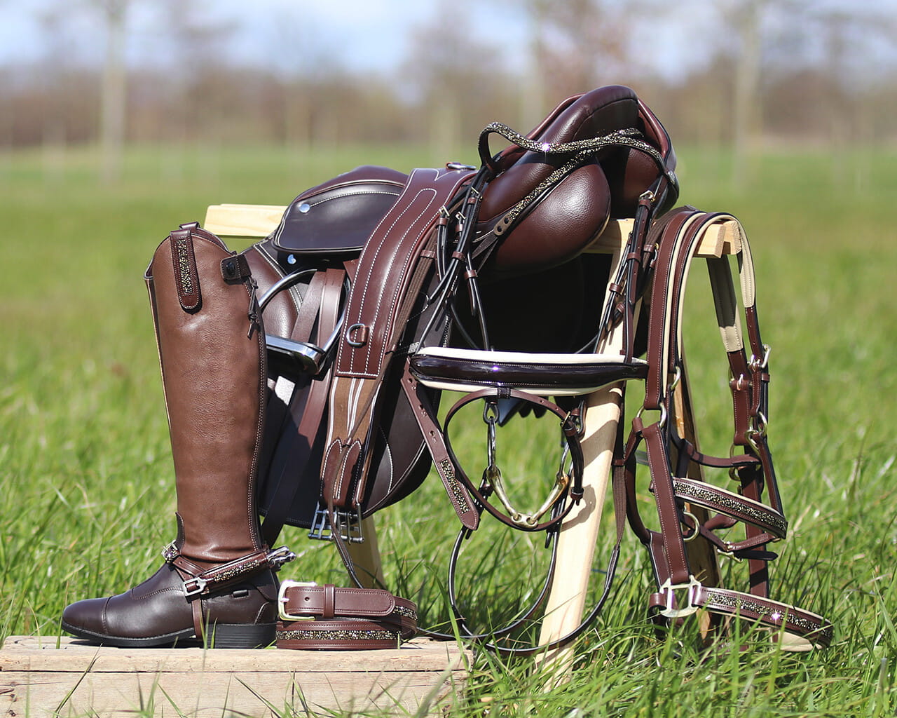 Eleganckie nakładki na ostrogi QHP "Lupine" to stylowy dodatek dla wymagających jeźdźców. Wykonane z wysokiej jakości skóry, chronią buty przed otarciami i jednocześnie stanowią ozdobę zestawu jeździeckiego. Zdobione błyszczącymi kryształkami, doskonale komponują się z pozostałymi elementami kolekcji Lupine.