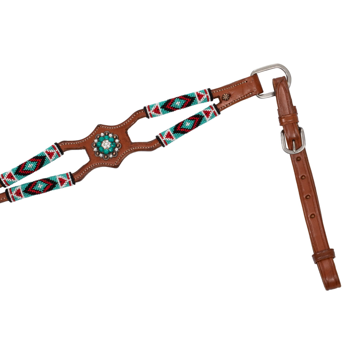 Napierśnik westernowy z wysokiej jakości skóry z dekoracją , która nadaje elegancki i wyrafinowany wygląd, wykonany ze sprzączkami ze stali nierdzewnej dla maksymalnej trwałości i wytrzymałości. Posiada również paski boczne i mocowanie do popręgu.