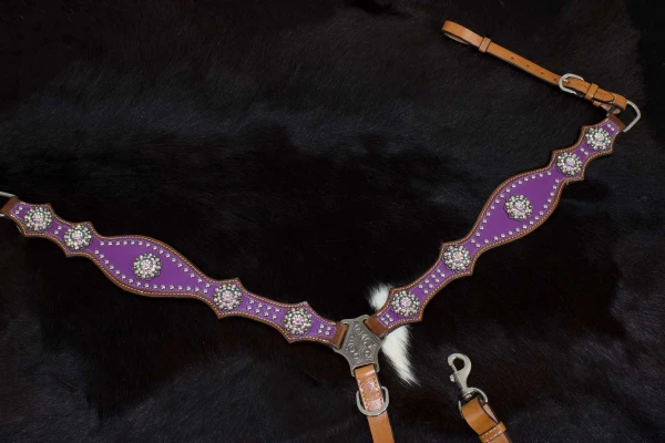 Piękny westernowy napierśnik skórzany, zdobiony.