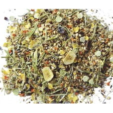 Płatki jęczmienne, wytłoki jabłkowe, płatki kukurydziane, ziarno słonecznika (5,5%), siano z lucerny (4,5%), płatki grochu, chleb świętojański, chipsy bananowe (3,5%), marchew pokrojona w kostkę (3%), burak ćwikłowy (2%), olej lniany.