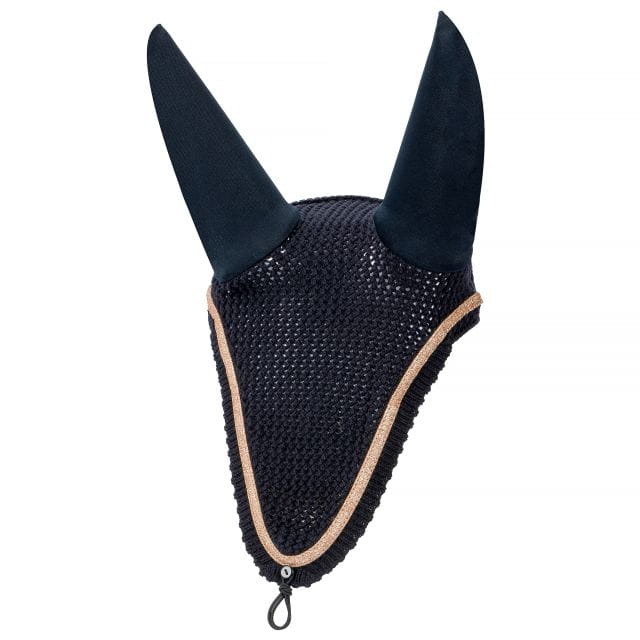 Bawełniane, długie nauszniki z elastycznymi uszami. Zdobione lamówką glitter. Posiadają gumkę i guzik aby przyczepić nauszniki do ogłowia.