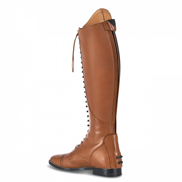Atrakcyjne, ciągłe sznurowanie umożliwiające dopasowanie do pożądanego dopasowania do łydki, podszyte skórzanym językiem, który można zamocować, aby zapobiec poluzowaniu się sznurowania, gdy nie jest noszone