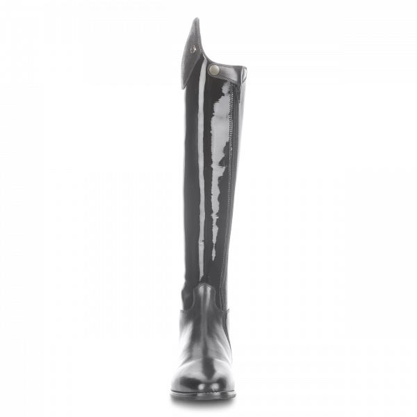 Cholewka wykonana z prawdziwej skóry lakierowanej, wstępnie uformowany łuk (8,5 cm) z aplikacjami z prawdziwej skóry oraz część stopy wykonana z najlepszej europejskiej skóry obuwniczej
