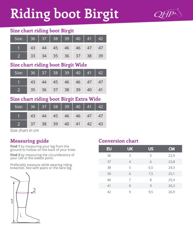 Oficerki QHP Birgit Adult to eleganckie i funkcjonalne buty jeździeckie o sportowym wyglądzie, zapewniające komfort oraz wsparcie podczas jazdy. Ich nowoczesny krój dopasowuje się do nogi, a praktyczne uchwyty na ostrogi ułatwiają użytkowanie.