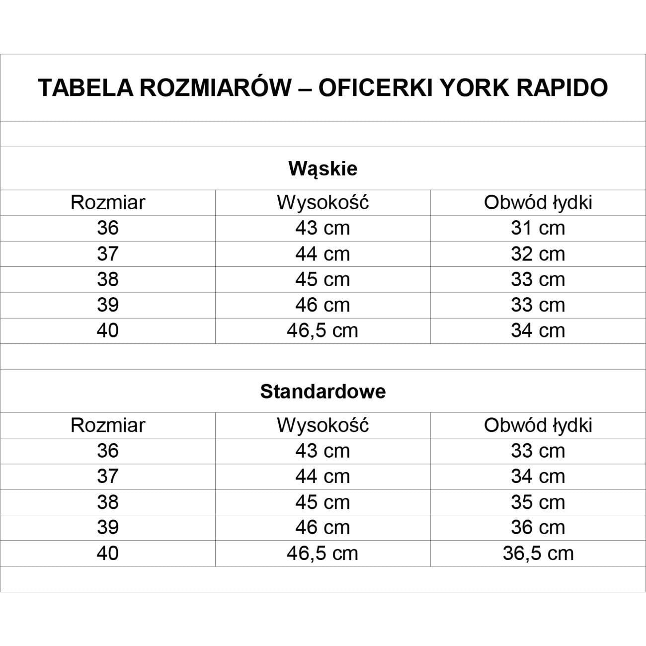 oficerki wykonane z naturalnej skóry posiadają elastyczną wstawkę w okolicy zamka, która pozwala na lepsze dopasowanie zamek (YKK) oraz elastyczne sznurówki ułatwiają zakładanie posiadają podpórki na ostrogi oraz innowacyjny system Shock Absorber pochłaniający wstrząsy i poprawiający komfort