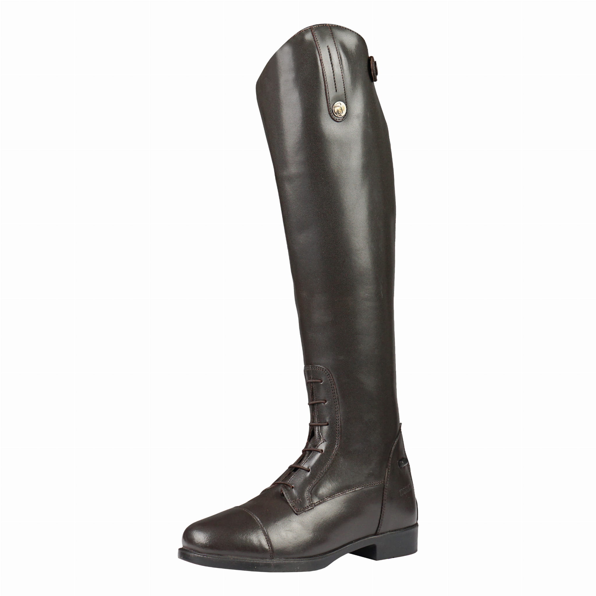 Skórzane oficerki jeździeckie z podszewką Cambrill i elastycznymi sznurowadłami na podbiciu.Obok zamka z tyłu znajdują się elastyczne elementy po obu stronach, aby zapewnić idealne dopasowanie.