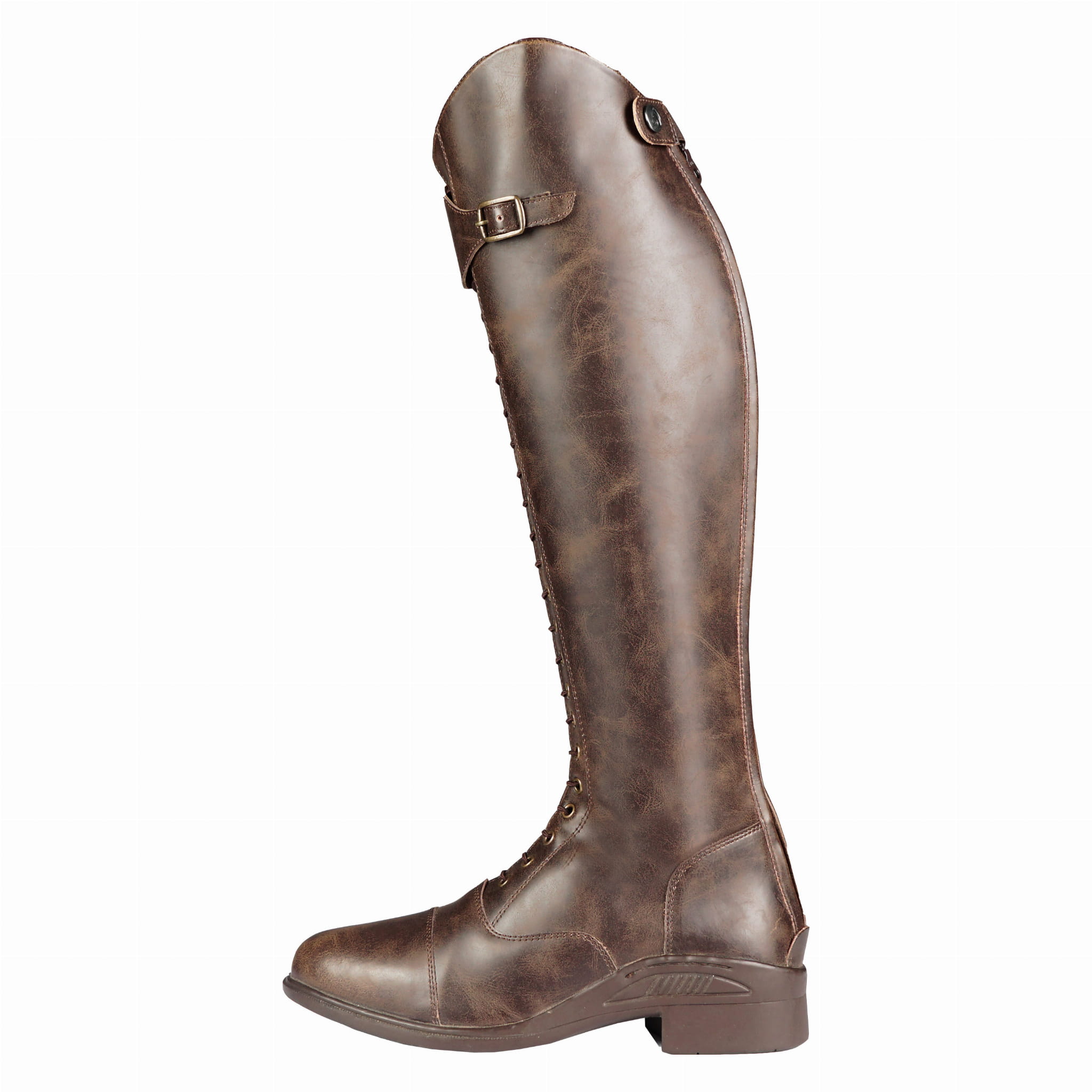 Specyfikacja produktu: - modny, rozciągliwy but jeździecki ze skóry syntetycznej ze sznurowadłami - podszewka z miękkiej tkaniny - zamek z tyłu - jedna strona elastyczna wzdłuż zamka - osłona na zamek błyskawiczny u góry.