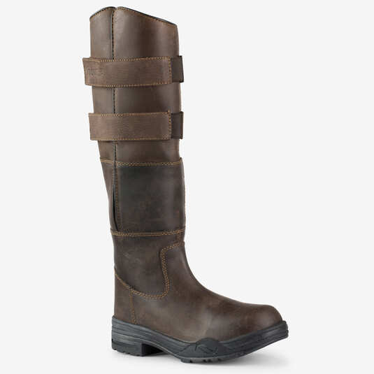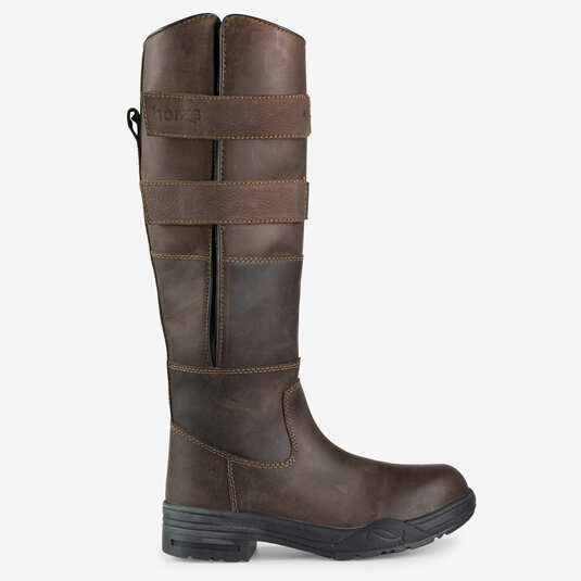 Oficerki z podszyciem wykonane z wysokiej jakości skóry nubukowej sprawią, że przez całą zimę będzie Ci ciepło i sucho. Dwa zapięcia na rzepy na łydce są regulowane, dzięki czemu możesz zakładać buty na najcieplejsze zimowe bryczesy lub dodatkowe spodnie przeciwdeszczowe. Solidna, wytrzymała podeszwa i wyraźnie zaznaczony obcas idealnie sprawdzają się podczas jazdy. Wodoodporne oficerki staną się Twoimi ulubionymi butami na zimne dni.