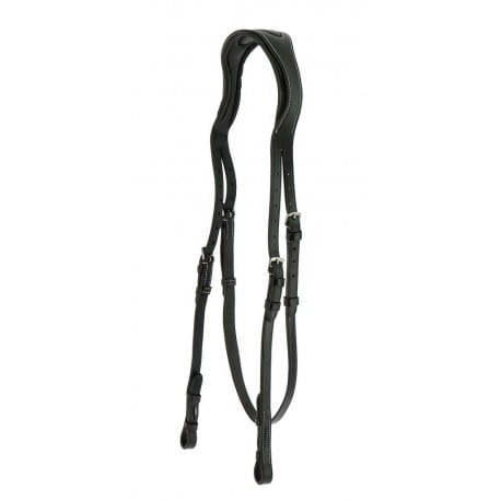 Zagłówek ze skóry bawolej, szerokie rozcięcie u góry, podszyty pikowaną skórą bydlęcą.