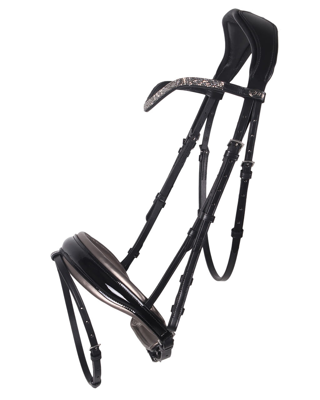 Ogłowie QHP „Lupine” czarne – eleganckie ogłowie z lakierowanym nachrapnikiem i kryształkami