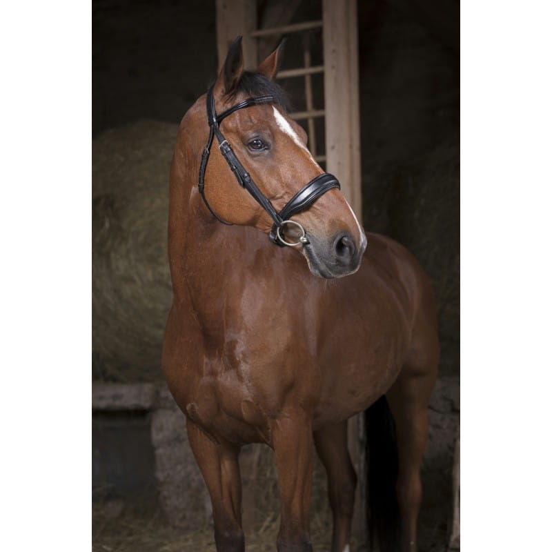- wysokiej jakości ogłowie - wykonane ze skóry bydlęcej - miękko podszyty pasek potyliczny - prosty wąski naczółek - nachrapnik typu szwedzkiego - pasek nosowy szeroki i miękko wyściełany - sprzączki ze stali nierdzewnej - sprzedawane bez wodzy